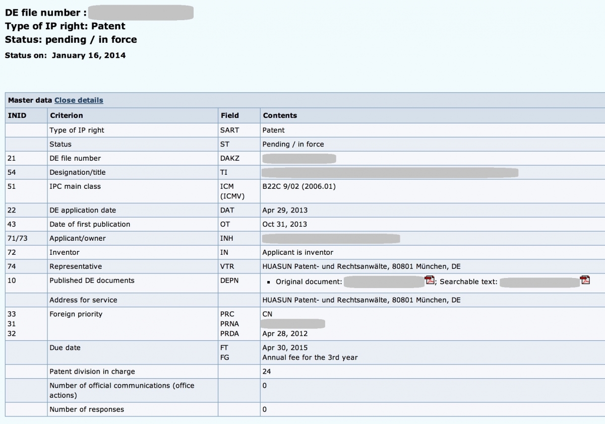 2014-01-25: 德国发明专利法律状态查询(DPMAregister)方法介绍完成更新,页面全部截图点击可查看原尺寸大图。