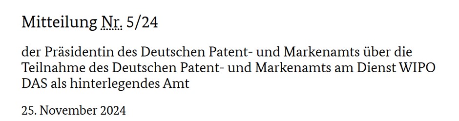 2025-01-14: 德国专利商标局作为“交存局”加入优先权文件数字接入服务(DAS)
